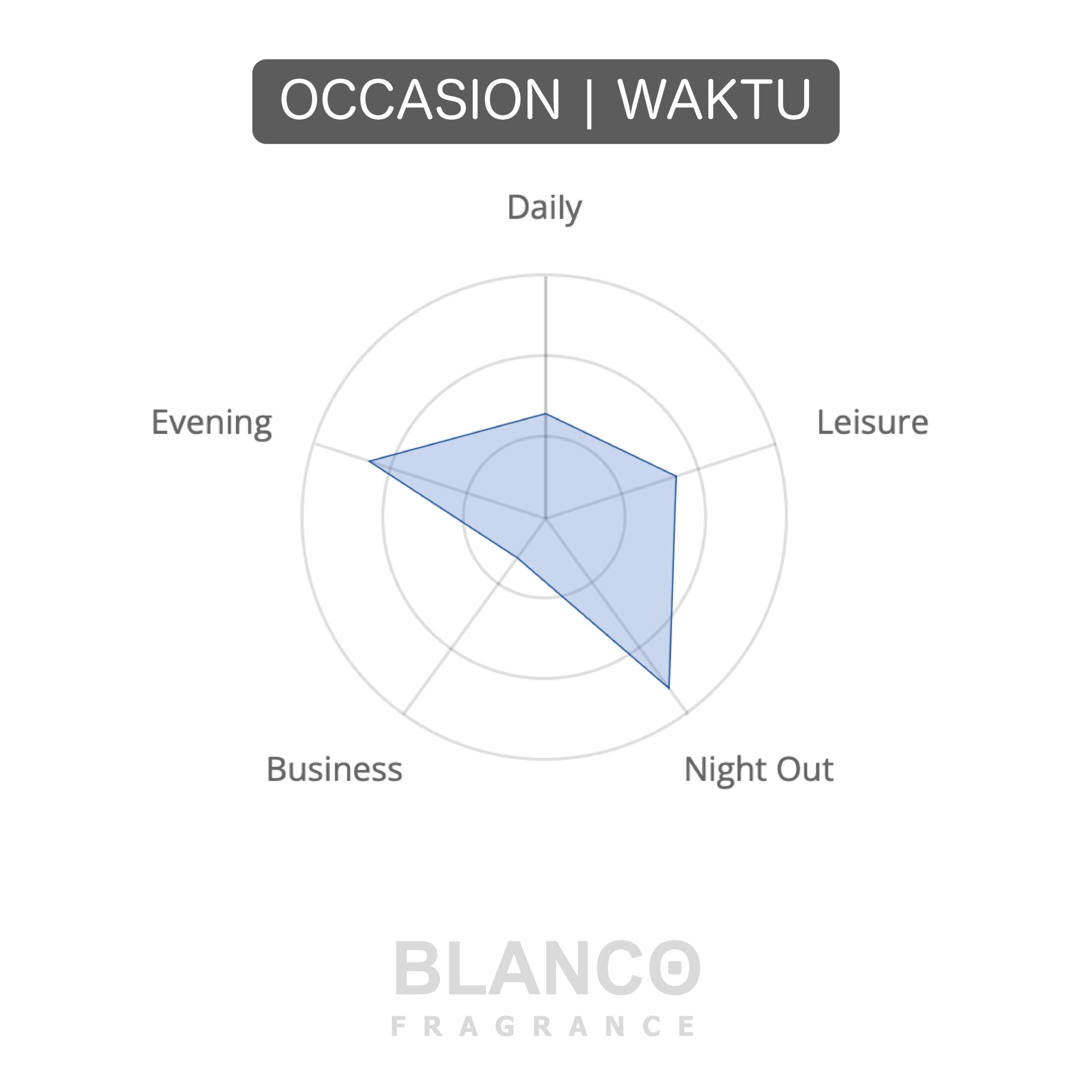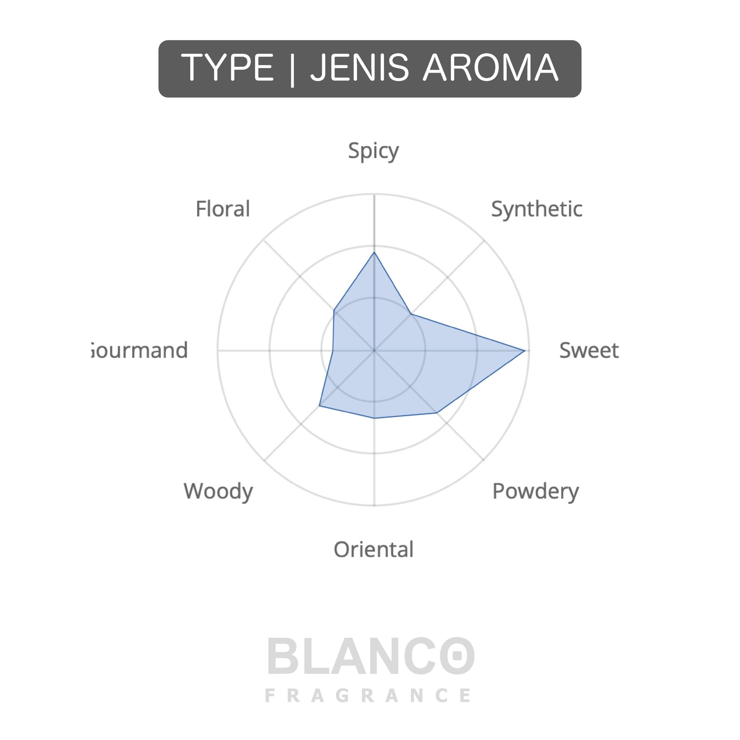 Diformulasikan untuk lelaki yang suka bau lembut, manis vanila dan pada masa sama tampak kacak Top notes are Mandarin Orange, Bergamot and Green Notes; middle notes are Pepper, Flowers and Cardamom; base notes are Vanilla, Guaiac Wood, Sandalwood, Musk and Amber. FOR MEN MESRA WHUDUK
