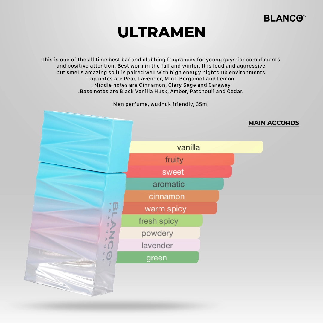 35ML MEN PERFUME MESRA WHUDUK Top notes are Pear, Lavender, Mint, Bergamot and Lemon; . Middle notes are Cinnamon, Clary Sage and Caraway; . Base notes are Black Vanilla Husk, Amber, Patchouli and Cedar.
